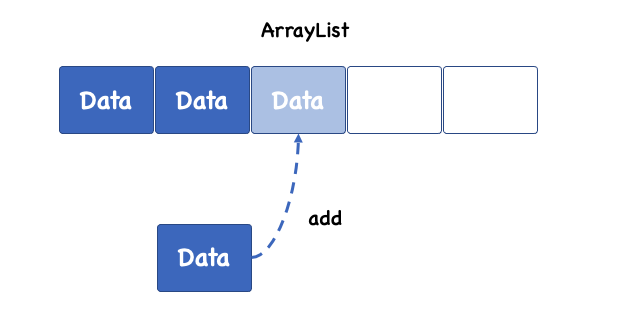 이 과정에서 새로 추가될 데이터를 저장할 공간이 없다면, 즉 내부 배열이 꽉차있다면 더 큰 사이즈의 새로운 배열을 생성하고 기존 값들을 새로운 배열로 복사하는 동작도 수행된다.