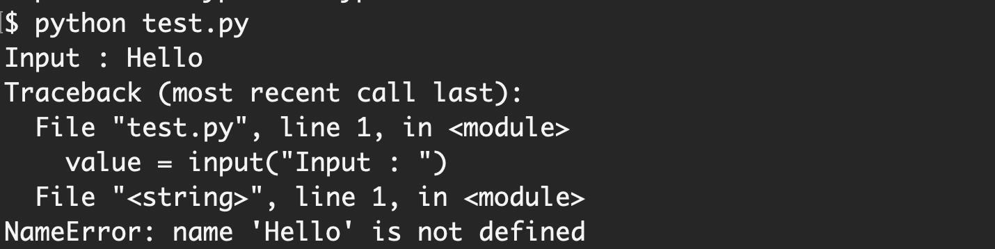 사용자로부터 입력을 받아 화면에 그대로 출력해주는 프로그램이다. 이 코드를 실행했을 때, 다음화면처럼 'NameError' 메시지를 받는 경우가 있다.