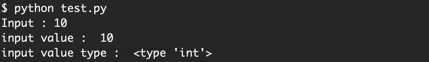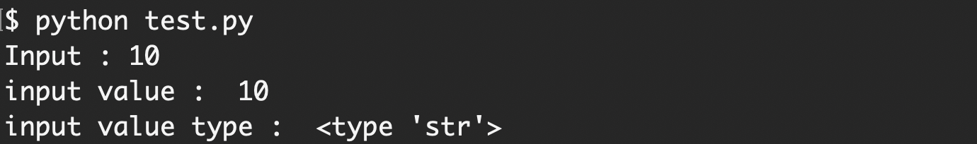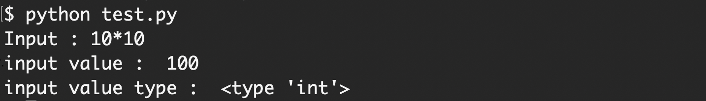 input() 함수는 사용자의 입력을 '식(Expression)'으로 판단하여 타입을 평가한 다음 그 결과를 변수로 저장한다. 즉, '10'을 입력하면 '10'이라는 값을 평가해서 정수 10을 얻고 그 값을 변수에 저장하는 식이다.