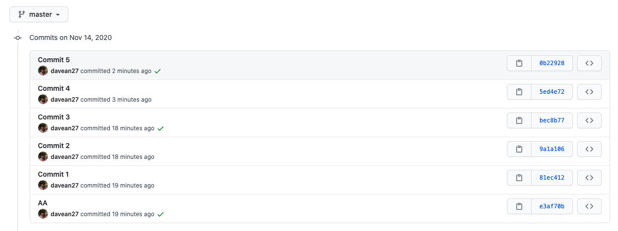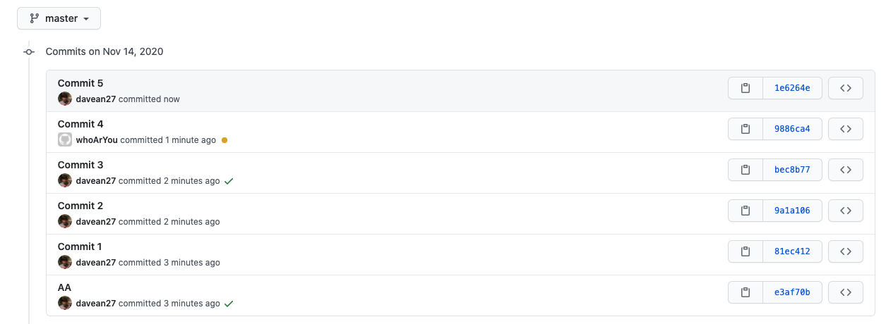 깃허브에 접속해보면 정상적으로 커밋 작성자가 변경된 것을 볼 수 있다. 다만 커밋 해시 값은 다른 값으로 수정되어 있는 것을 확인할 수 있다.