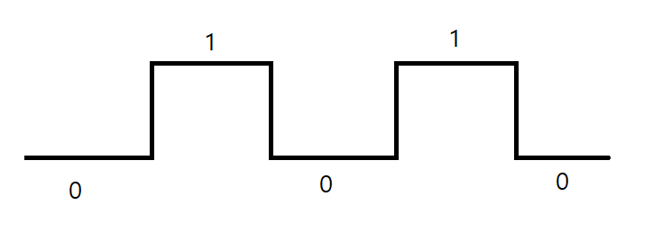 예를 들기 위해 0과 1의 값을 가질 수 있는 어떤 변수를 생각해보자. 어떤 시스템에서 이벤트를 감지할 수 있는 센서라고 생각해도 좋다. 이 변수는 조건에 따라 0이 되기도하고 1이되기도 한다. 이를 그래프로 그려보면 위 그림처럼 0과 1이 번갈아가면서 바뀌는 것처럼 그려볼 수 있다.