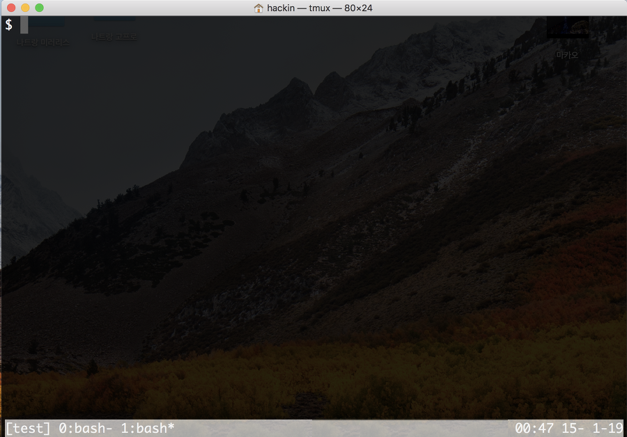 현재 활성화된 윈도우의 이름이 빨간색으로 마킹되어 표현된다. tmux 에서 제공하는 다양한 옵션을 이 명령어로 바꿔가면서 자신만의 실행 환경을 커스터마이징 할 수 있다.