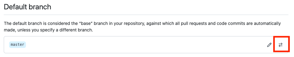 'Branches' 메뉴를 선택하면 Default branch라는 메뉴를 볼 수 있다.