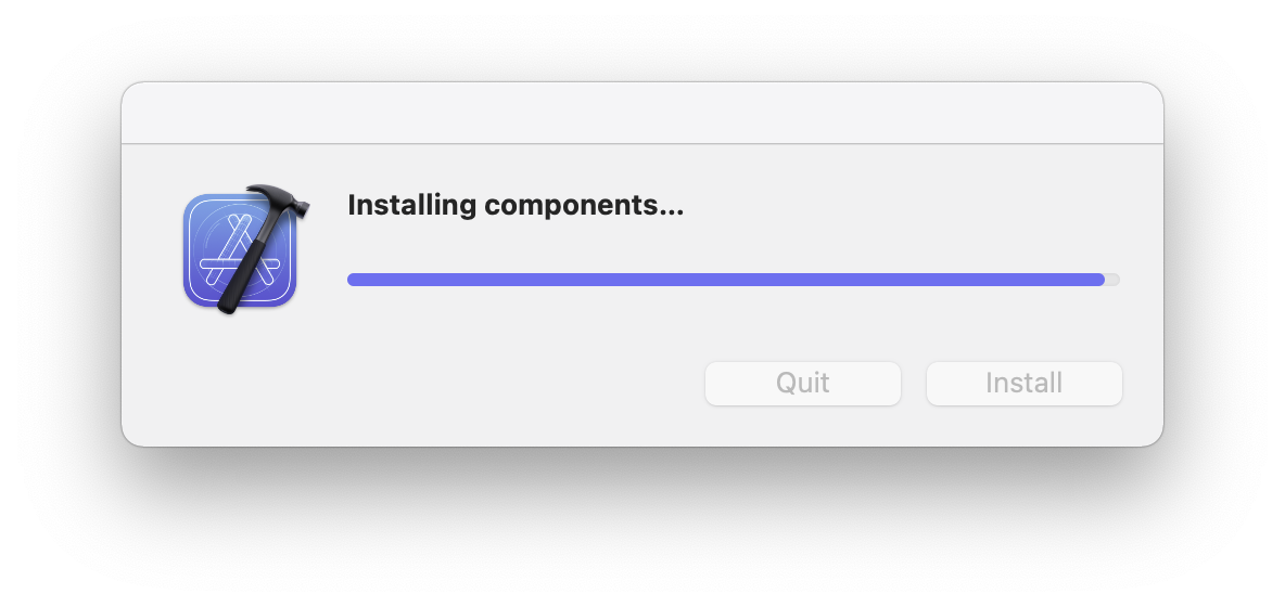 앱 스토어에서 Xcode를 검색하면 결과로 나오는데, '받기' 버튼을 누르면 '설치' 버튼으로 바뀐다. 설치 버튼을 눌러서 Xcode 설치를 진행한다. Xcode 앱이 12GB 정도되기 때문에 다운로드 및 설치에 한참 걸린다. 인내심을 가지고 기다리자.