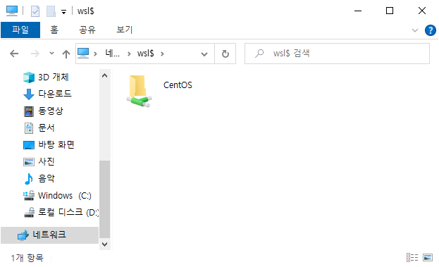 WSL2가 구동되어 있는 상황에서 \\wsl$ 라는 경로를 파일 탐색기의 주소창에 입력하면 네트워크 항목에서 설치된 WSL을 찾아볼 수 있다.