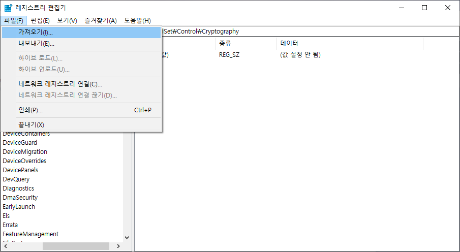 백업한 .reg 파일은 다시 레지스트리 편집기의 '파일' -> '가져오기' 항목으로 복구 할 수 있다.
