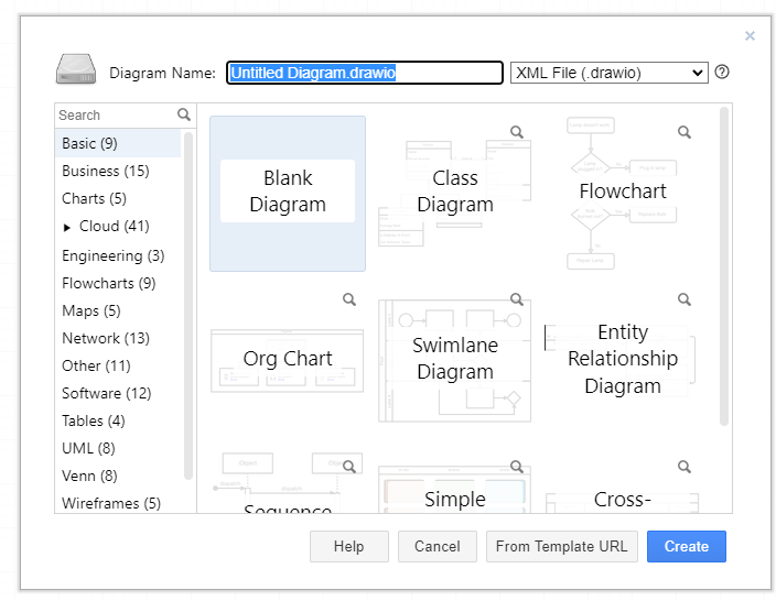 app.diagrams.net은 다양한 다이어그램을 지원한다.