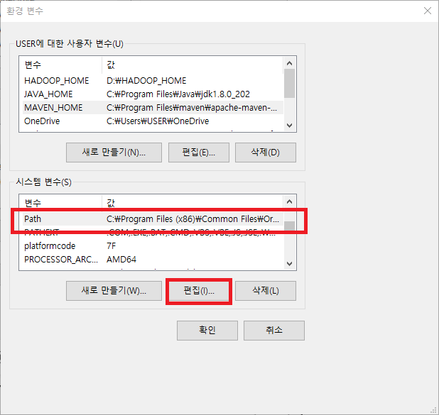 새로만들기 버튼을 눌러서 %MAVEN_HOME%\bin 을 입력해준다. 이제 커맨드 창에서 mvn을 입력하면 이 경로로 따라 들어가서 mvn을 찾아 실행하게 된다.