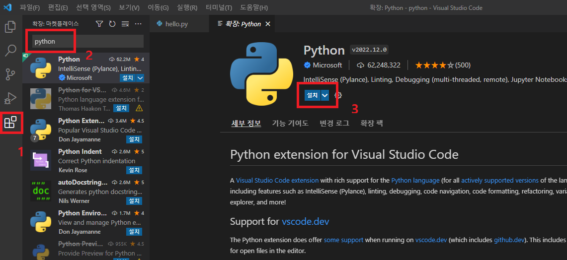 그러면 파이썬 익스텐션의 설치가 끝난다.