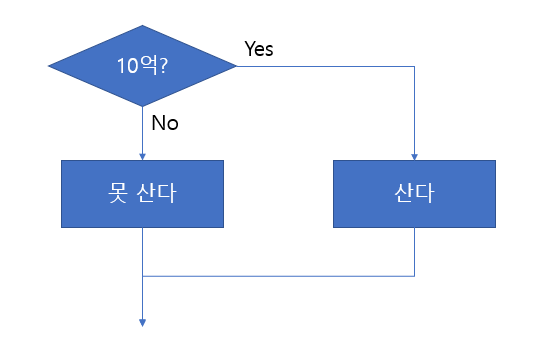 10억이라는 조건이 있고, 그 조건의 만족 여부에 따라서 어떤 코드가 실행될지 결정된다.