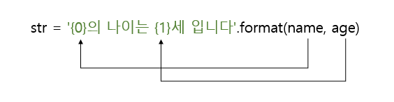 str = '{0}의 나이는 {1}세 입니다'.format(name, age)