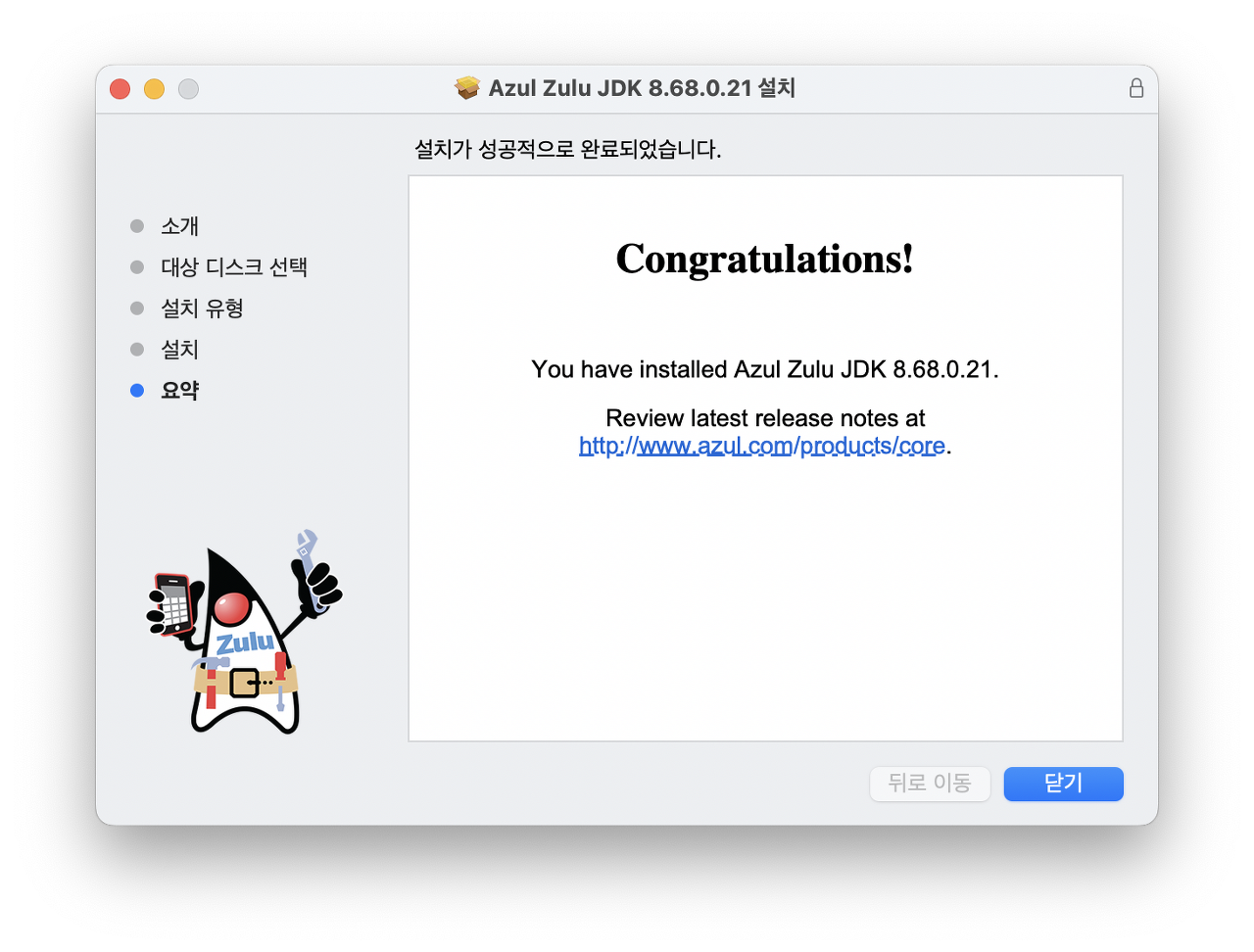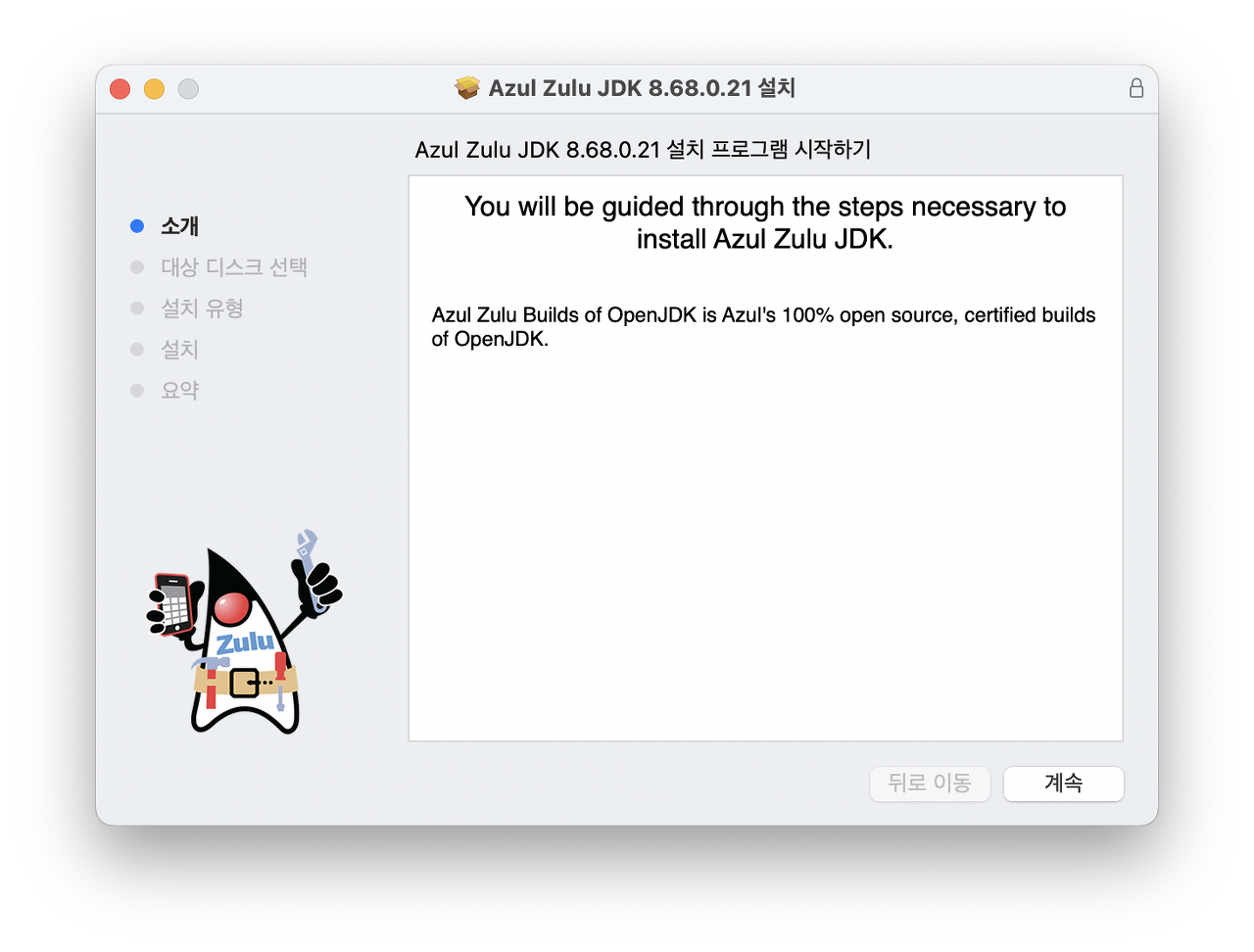 Zulu를 다운로드하기 위해 원하는 자바 버전과 운영체제, 아키텍처를 선택한다. 그럼 다운로드할 수 있는 링크가 나온다. dmg 파일을 다운로드해서 설치를 진행하면 된다.