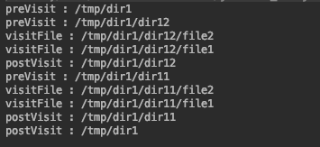 서브트리를 순회하면서 호출되는 순서를 보기 위해서 구현한 매우 간단한 FileVisitor다.
