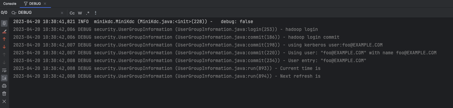 새창이 뜨면서 DEBUG 문자가 들어간 라인만 골라서 보여준다.