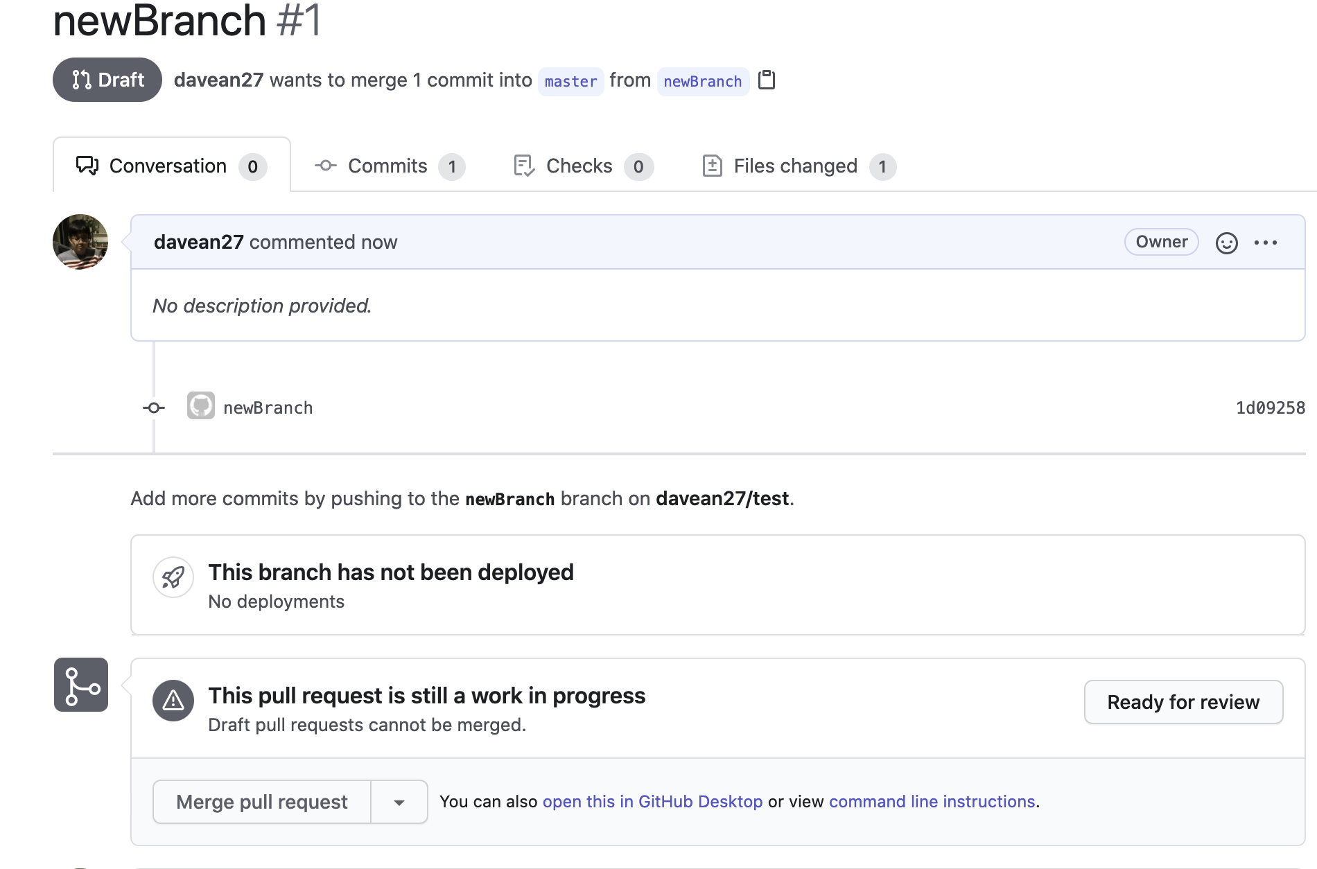 버튼이 "Draft pull request"로 바뀐다.